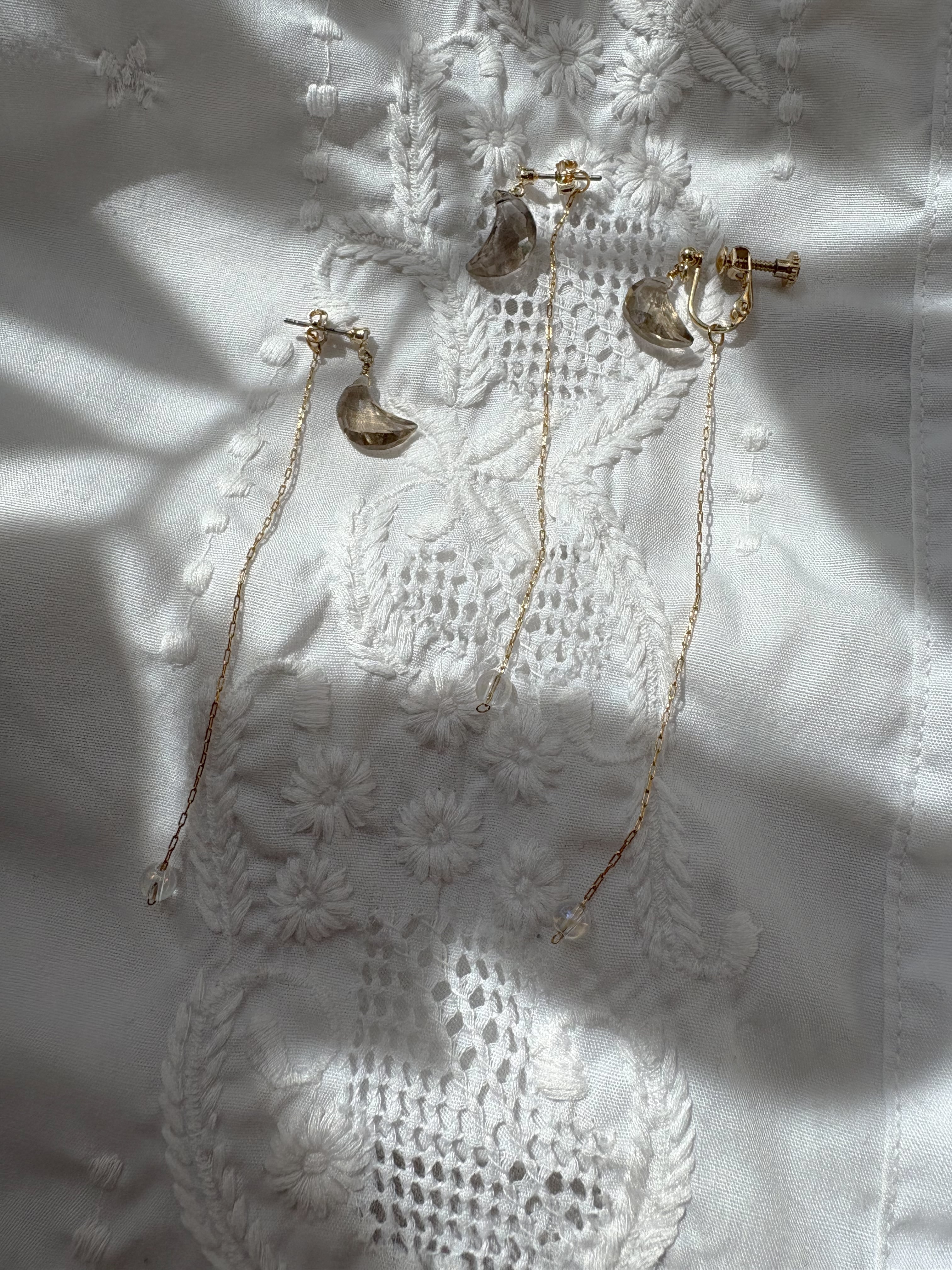 耳元でゆらめく光が、自然と淑女の雰囲気を引き立てるピアスです。