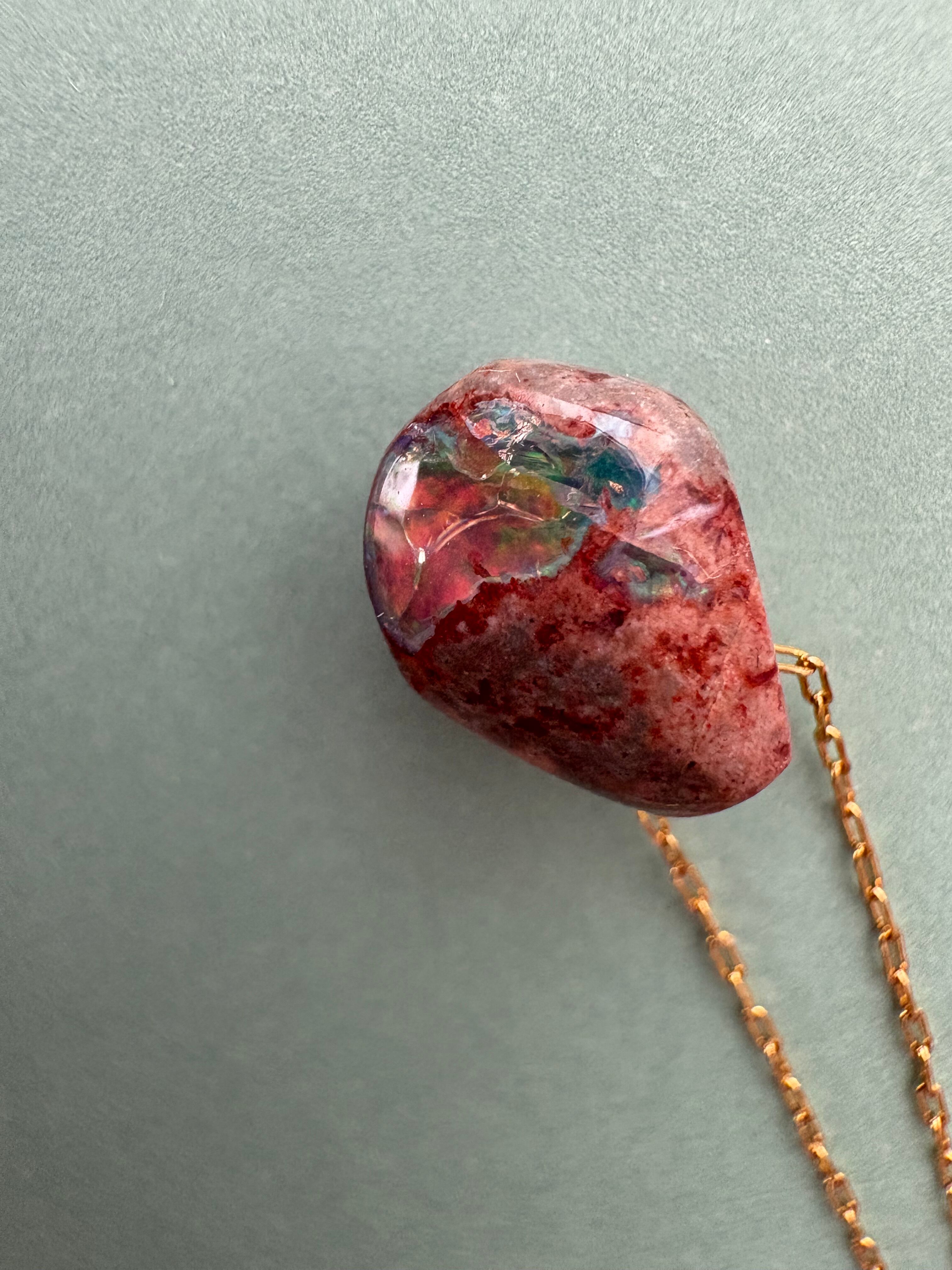 このネックレスに使われているのは、カンテラオパールという特別な天然石。