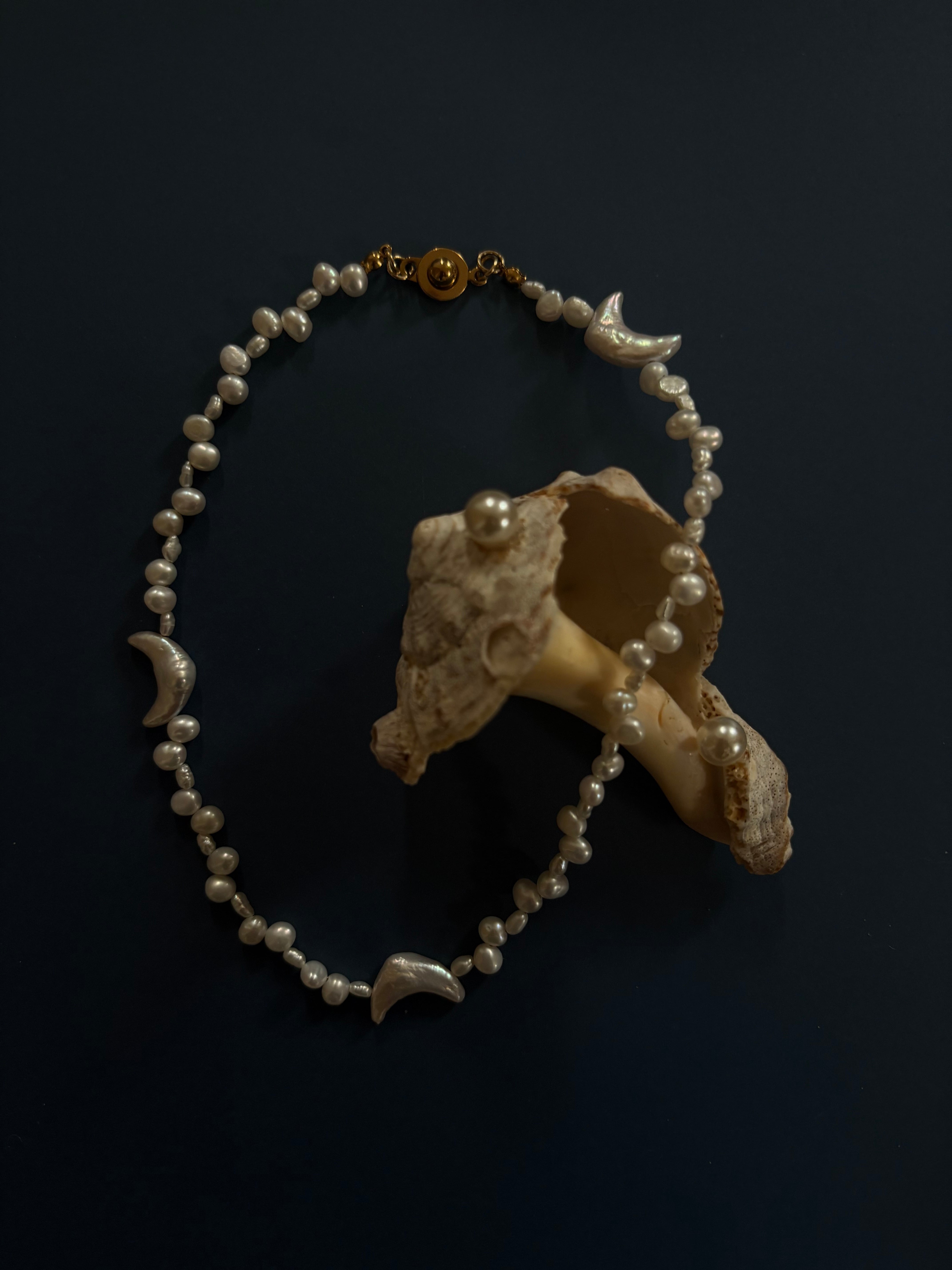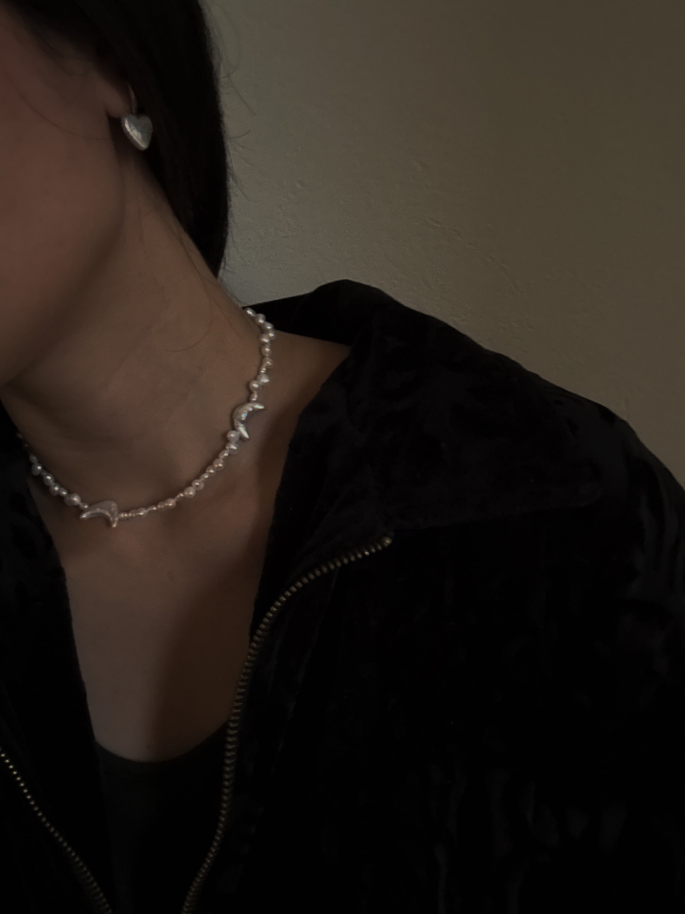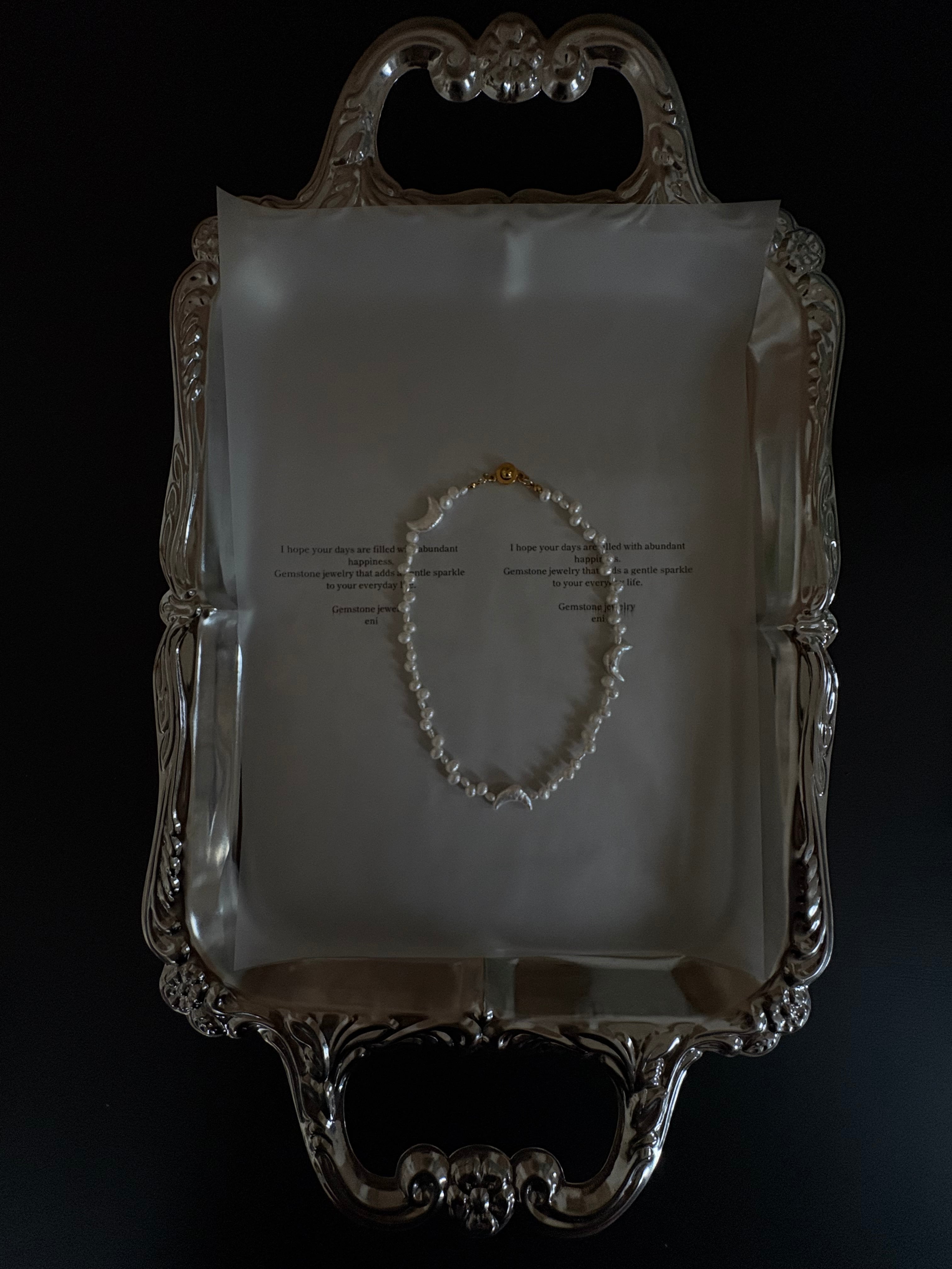 そう考えて、動きのあるパールと組み合わせながらひとつひとつ紡いでいきました。
