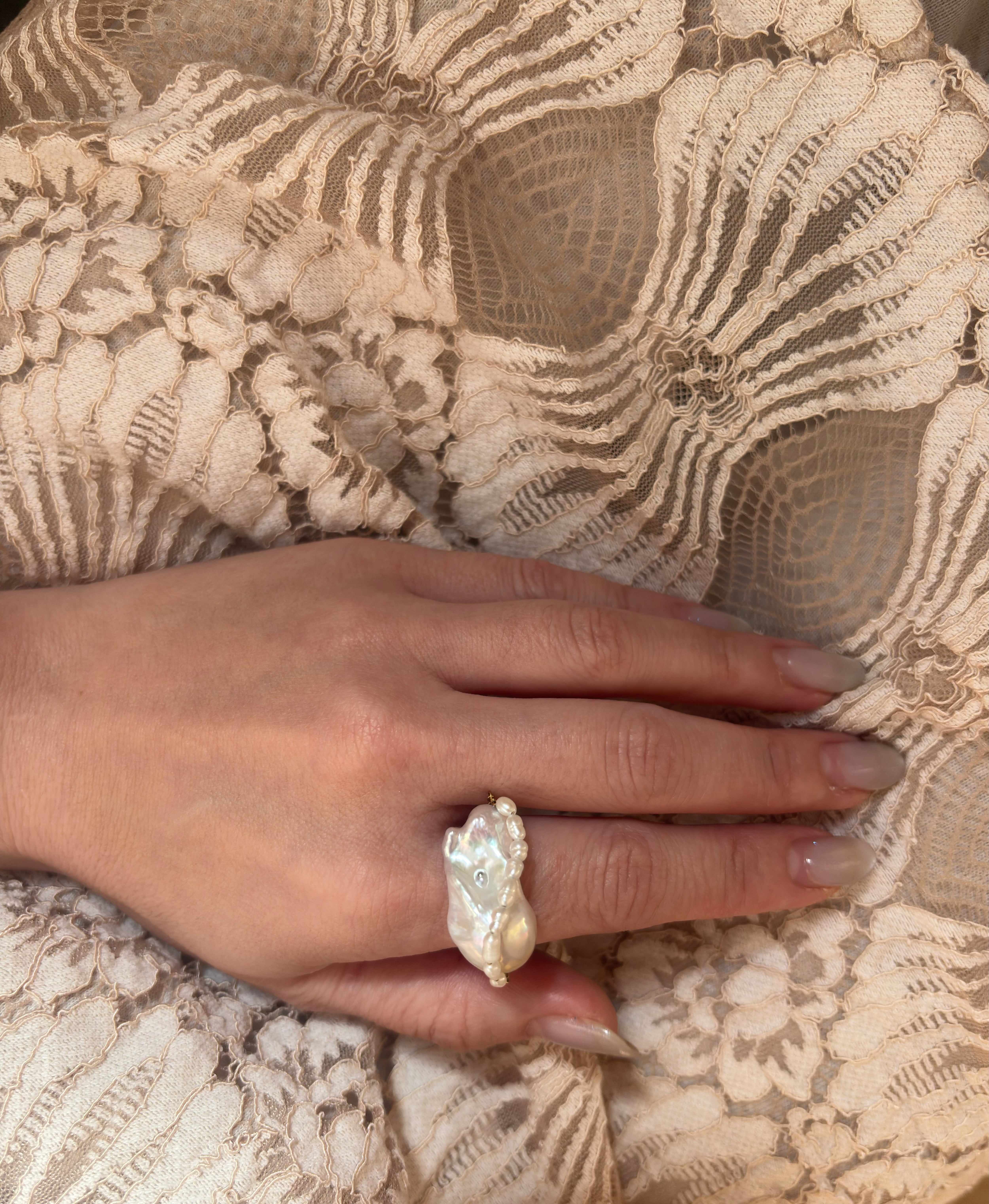 【艶めく女性美を指先に。バロックパール チェーンリング】