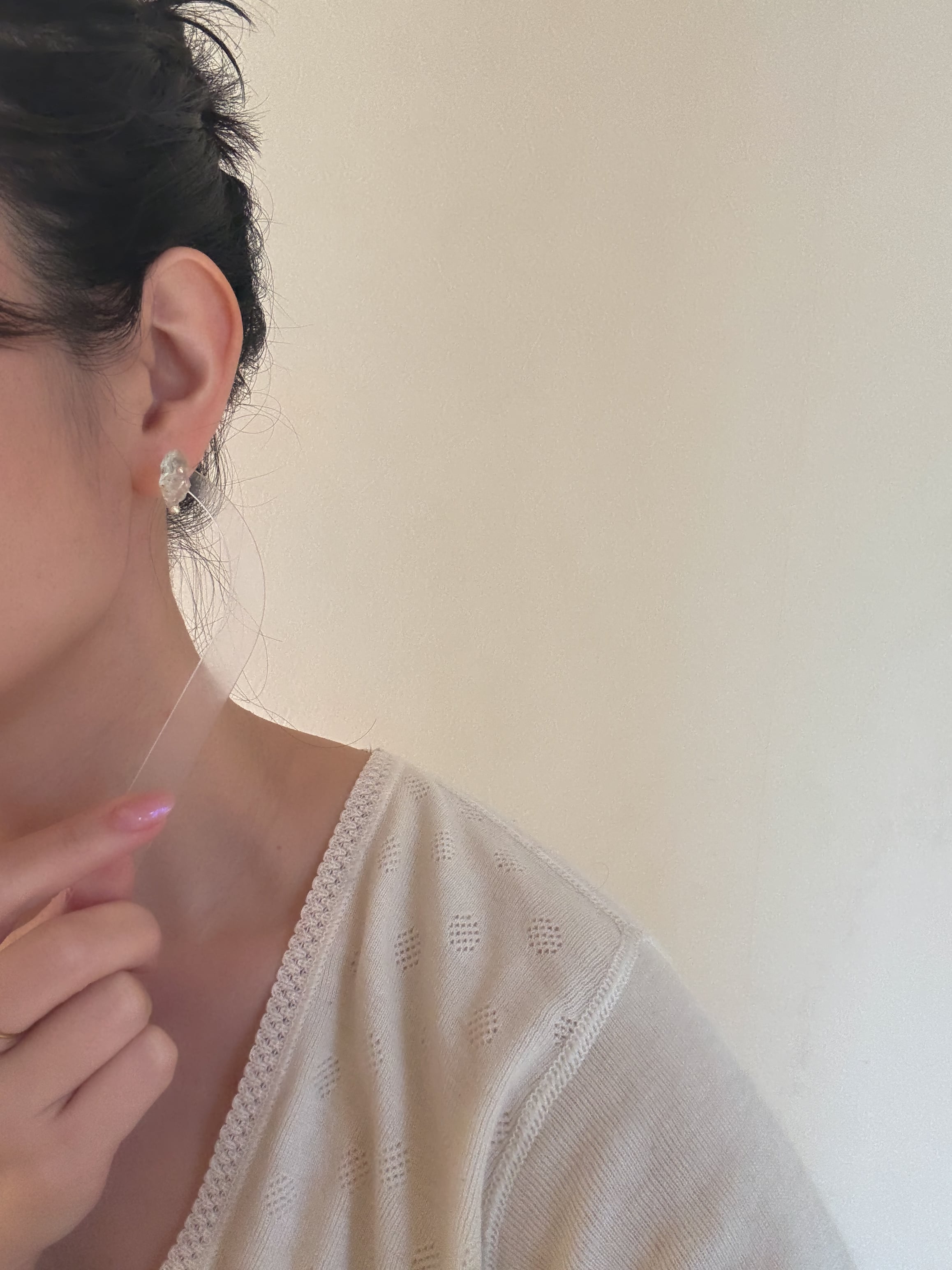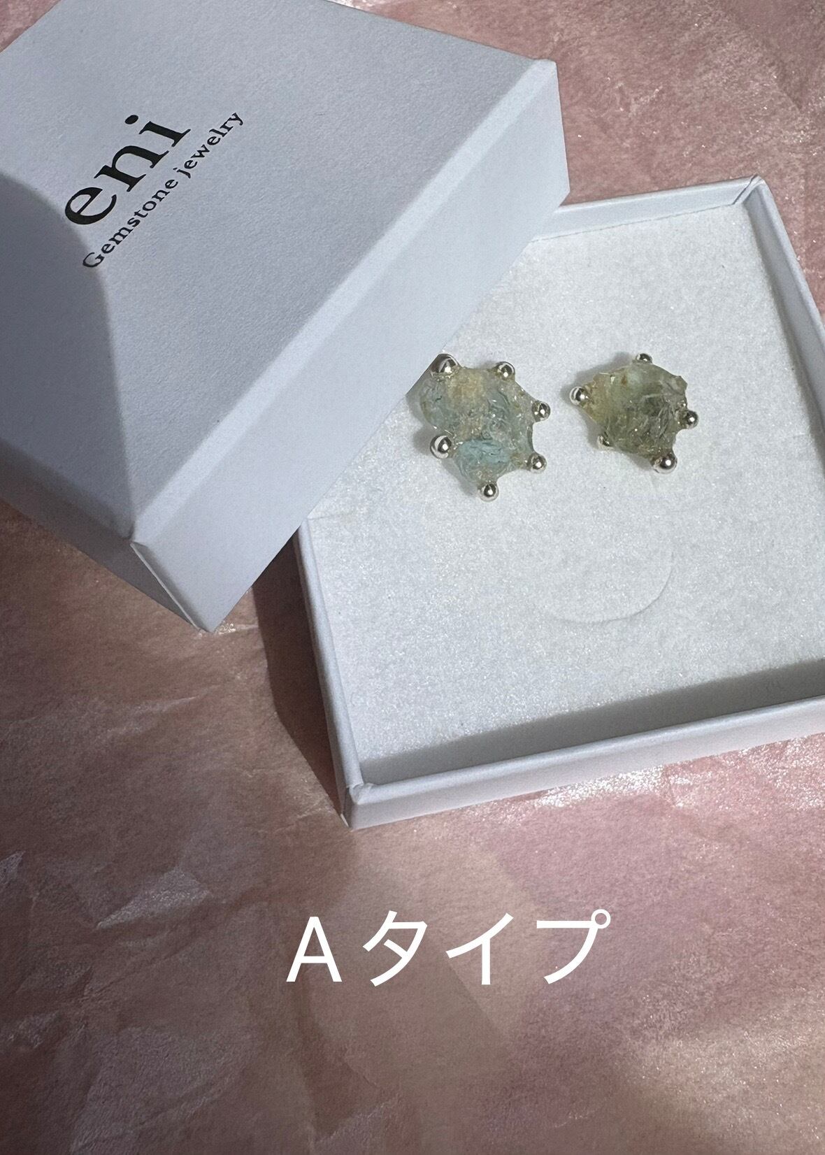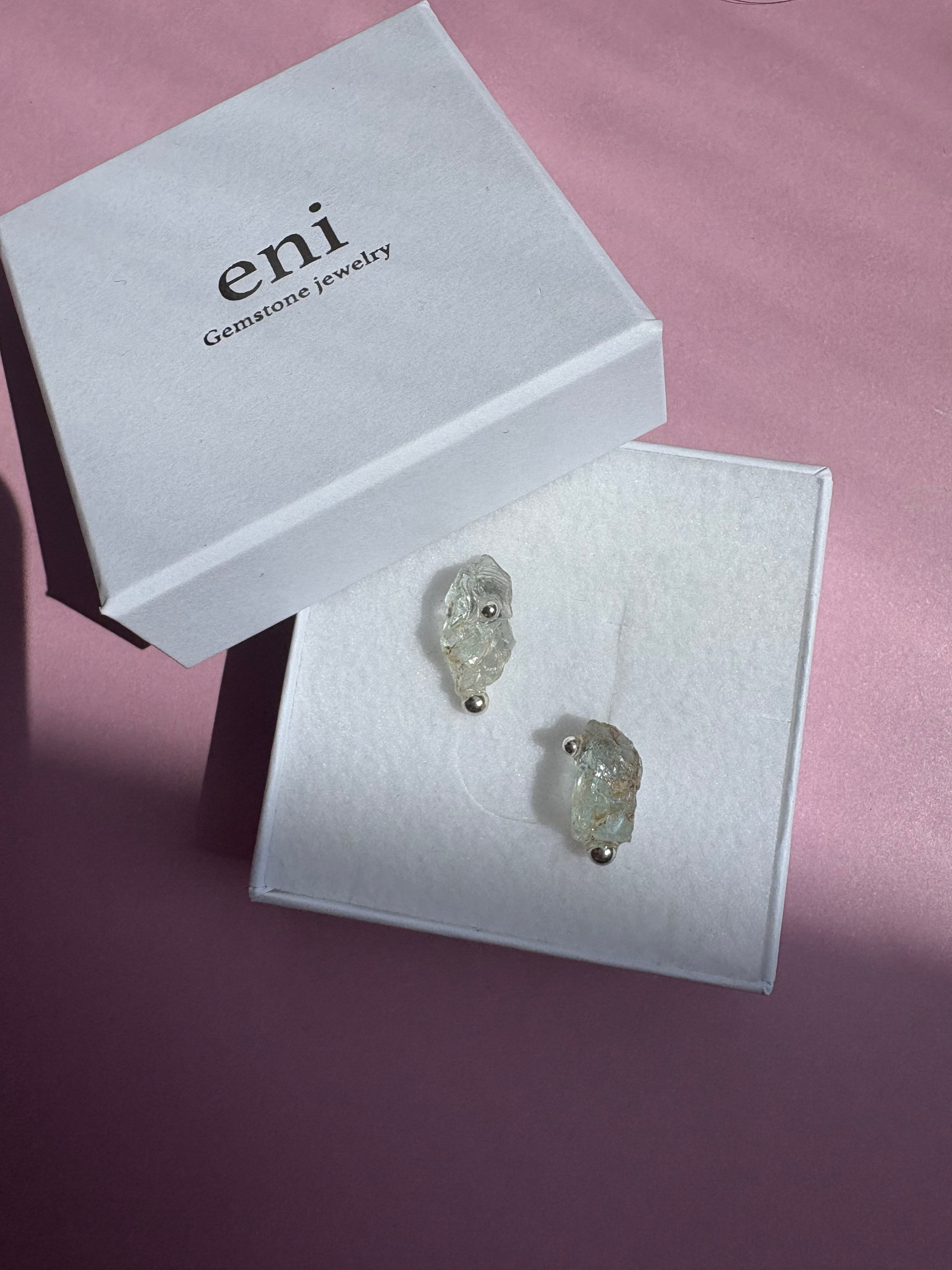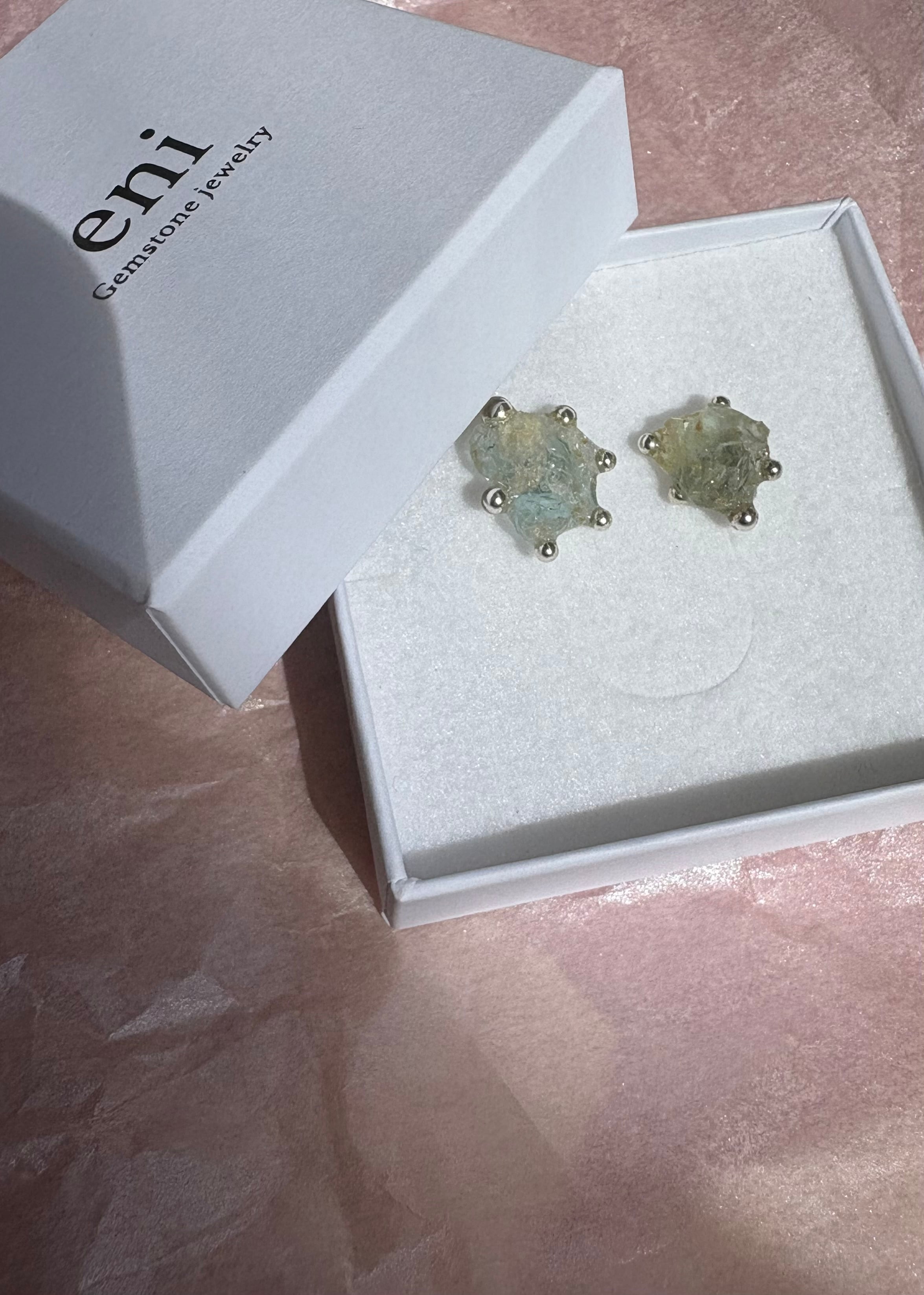 アクアマリンの原石に、小さな粒を添えて